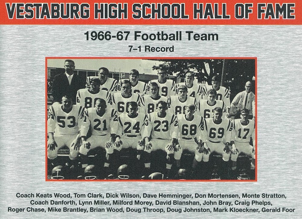 Doug Throop, Chuck Davis, Gerald Hull, Mike Bigelow, Dave Blanshan, John Bray, Dave Hemminger, Dick Wilson, Mike Brantley, Tom Clark, Pat Stratton, Bob Rood, Monte Stratton, Don Mortenson, Brian Wood, Ron Sharp, Roger Chase, Melvin Gumms, Tim Thurx, Tom Wright, Darrell Hetherington, Doug Johnson, Dennis Blanshan, Bob Bray, Jim Burge, Ed Morey, Steve Hoover, Doyle Wood, Gerald Foor, George Brantley, Coach Keats Wood