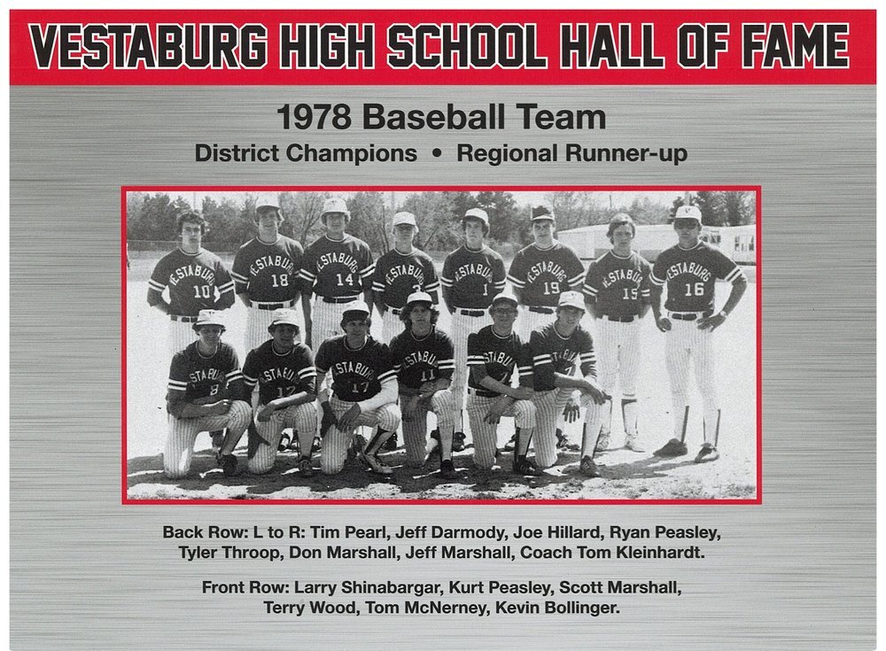 Tim Pearl, Joe Hillard, Ryan Peasley, Don Marshall, Jeff Marshall, Larry Shinabargar, Kurt Peasley, Terry Wood, Tom McNerney, Kevin Bollinger, and Coach Tom Kleinhardt